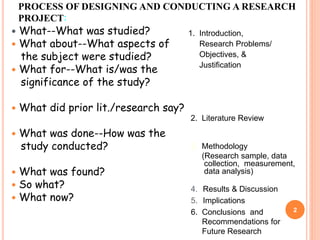 This document discusses different types of research design. It defines research design as a plan or strategy to obtain answers to research questions while controlling variance. The key elements of research design include the problem, methodology, data gathering, analysis, and reporting. Different types of designs covered include historical, descriptive, developmental, exploratory, case study, correlational, causal comparative, experimental, and quasi-experimental. The purpose, process, and considerations for each design type are outlined.