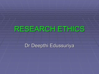 This document discusses research ethics and the role of ethics review committees. It outlines guiding ethical principles like autonomy, beneficence and justice. It presents examples of ethical issues in research like falsifying data, plagiarism, and failing to obtain informed consent. Unethical practices amount to scientific misconduct. The role of ethics review committees is to ensure research follows ethical standards and protects participants. Researchers must obtain approval from these committees before starting data collection.