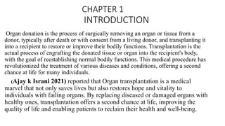 The study assesses the effectiveness of a video-assisted teaching program on organ donation knowledge among engineering students at a Chennai college. Results indicate significant improvement in post-test knowledge scores, with 81% of students achieving adequate knowledge post-intervention. The research highlights the need for increased awareness and educational initiatives to enhance organ donation rates in India.