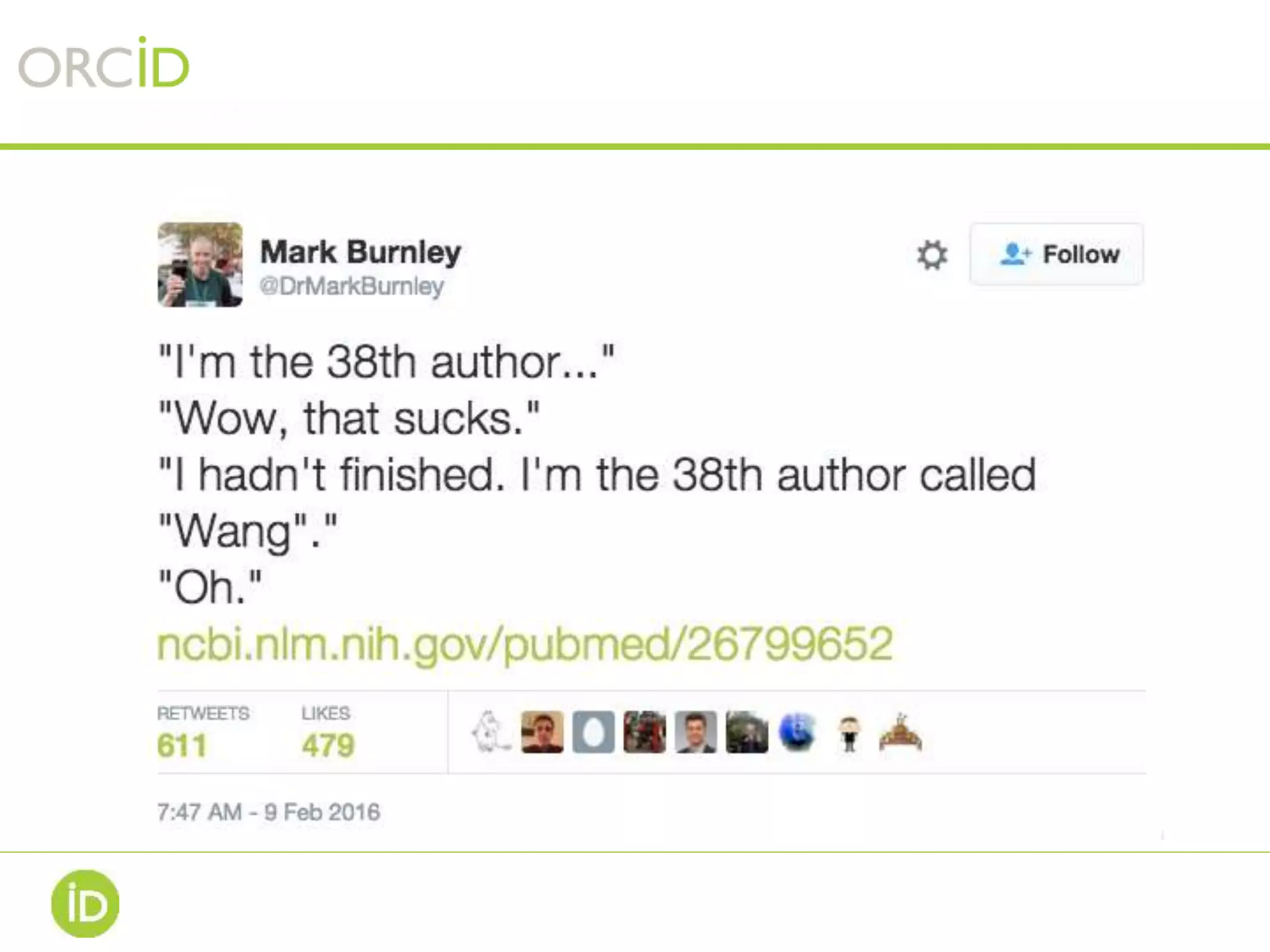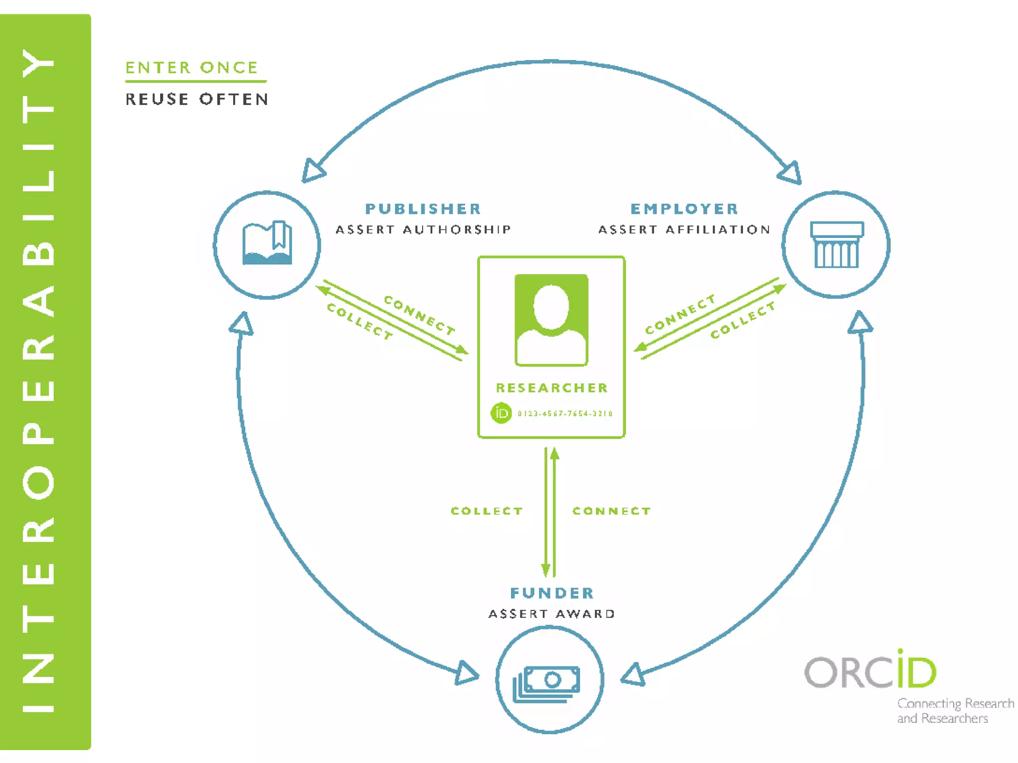 This document discusses ORCID, a registry that provides researchers with a unique identifier to help distinguish them from others with similar names. It notes challenges in identifying researchers due to name variations and ambiguities. ORCID aims to address this by assigning persistent digital IDs that uniquely identify individuals and can link to their professional activities and affiliations. The document outlines how ORCID benefits researchers, universities, publishers, funders and more by enabling identity verification and information sharing through its registry and API. It provides statistics on ORCID usage and member organizations.