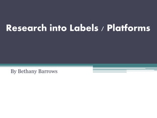 The document discusses four labels/platforms: Motown, Sony Records, YouTube, and Vimeo. It provides details on when and how each company was founded, key events in their histories, current ownership, and their roles in the music/video industries. Motown was founded in 1959 and had great success in the 1960s, while Sony Records has had ownership of several labels since the 1930s. YouTube was created in 2005 and was purchased by Google, and allows users to upload various video types. Vimeo was founded in 2004 and was the first platform to support high definition video sharing.