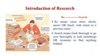 This document provides an overview of research methodology. It begins by defining research as an organized and systematic way of finding answers to questions. It then discusses key aspects of research methodology including types of research, research paradigms, quantitative versus qualitative approaches, and the main components and building blocks of research methodology. Specifically, it outlines different research designs, data collection methods, the importance of participants and sources of data, and considerations around reliability, validity, pilot studies, data analysis, and ethics.