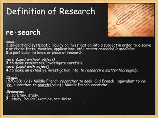 يهدف الكتاب إلى تقديم معلومات متكاملة حول البحث المعماري من خلال توضيح أسسه ومراحله وأهم موضوعاته في التعليم المعماري. يتناول أيضًا ضرورة تحديث المعلومات بشكل دوري ليتناسب مع تطورات العلم والممارسة المعمارية. كما يبرز أهمية الجمع بين التعليم الأكاديمي والممارسة العملية لتحقيق نتائج بحثية مستدامة.