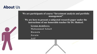 This study examined the impact of stock mispricing on corporate investment decisions of non-financial firms listed on the Pakistan Stock Exchange from 2008-2014. It found that both overvalued and undervalued stocks affected investment decisions, and that investment sensitivity was higher for financially constrained firms that rely more on equity financing. The findings provide implications for promoting investment in Pakistan by increasing awareness of behavioral biases that can lead to mispricing and less efficient markets.