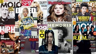 This document compares and summarizes four British music magazines: NME, i-D, Q, and Mixmag. It provides details on the history, target audience, price, and content of each magazine. For NME, it notes that the magazine was originally a music newspaper that transitioned to a magazine format. For i-D, it highlights that the magazine focuses on street style and youth culture. It states that Q and Mixmag both include music reviews and cost £4.20 and £4.99 respectively. The document then provides more detailed profiles and summaries of Q magazine and i-D magazine.
