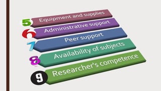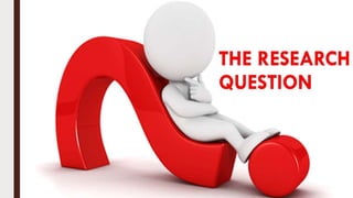 This document discusses formulating a research problem. It defines a research problem, outlines the key elements including objectives, topics, time dimensions, locations, and populations. It also discusses criteria for selecting a good research problem such as feasibility, novelty, ethics, and relevance. Sources of research problems and the phases of establishing a problem statement are described. An example of a well-formulated research problem is provided.