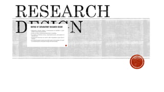 The document discusses key concepts related to research including research projects, topics, proposals, problems, objectives, hypotheses, methodology, design, and limitations. It notes that a research project uses scientific methods to achieve defined objectives, such as testing or creating new knowledge. Choosing a research topic is an ongoing process of exploring, defining, and refining ideas on a subject that is narrow yet allows finding adequate information. A research proposal explains what is being researched, why, and how through a structured formal document. Research design broadly outlines the total pattern of conducting a research project including objectives, methods, and outcomes. Marketing research systematically gathers and analyzes qualitative and quantitative data about issues relating to marketing products and services.