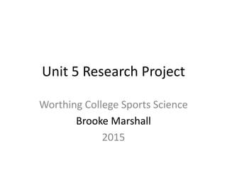 This document outlines Brooke Marshall's research project investigating the relationship between levels of vigour and passing success rates in female footballers aged 16-25. The project involved collecting data on participants' vigour using a POMS questionnaire and observing their passing success rates during games. Results found a strong positive correlation between higher vigour and higher passing success rates, supporting the first hypothesis. However, no relationship was found between vigour and total passes, not supporting the second hypothesis. The review identifies strengths in standardized instructions and video analysis, but notes weaknesses in only observing one game and lack of inter-rater reliability between observers. Future recommendations include observing multiple games per participant and improving observer reliability.