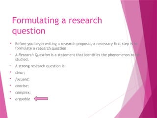 2. Focused: Be sure that your question isn't too broad! You'll only have so much time to research and so much space to write, so don't choose something overwhelming.