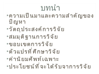 • ตั ว แปรที ่ ศ ึ ก ษาวิ จ ั ย