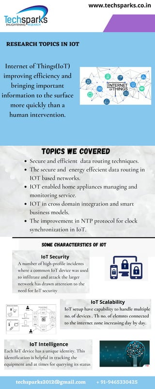 The document discusses secure and energy-efficient data routing techniques in IoT-based networks, emphasizing the management and monitoring of IoT-enabled home appliances. It highlights the importance of IoT security in light of recent incidents and the scalability of IoT setups as the number of connected devices increases. Additionally, it mentions improvements in protocols like NTP for clock synchronization and the unique identification of each IoT device for effective tracking.