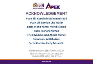 This document provides an overview of researcher profiles and identifiers. It discusses several platforms for creating researcher profiles, including ResearcherID, Scopus ID, Google Scholar Citations, and ORCID. The document outlines how to create profiles on each platform and link publications. It also describes benefits of having a researcher identifier such as increased discoverability and citation credit. The document consists of a presentation with multiple sessions covering introduction to profiles, creating profiles, researcher identifier forms, and recommendations.