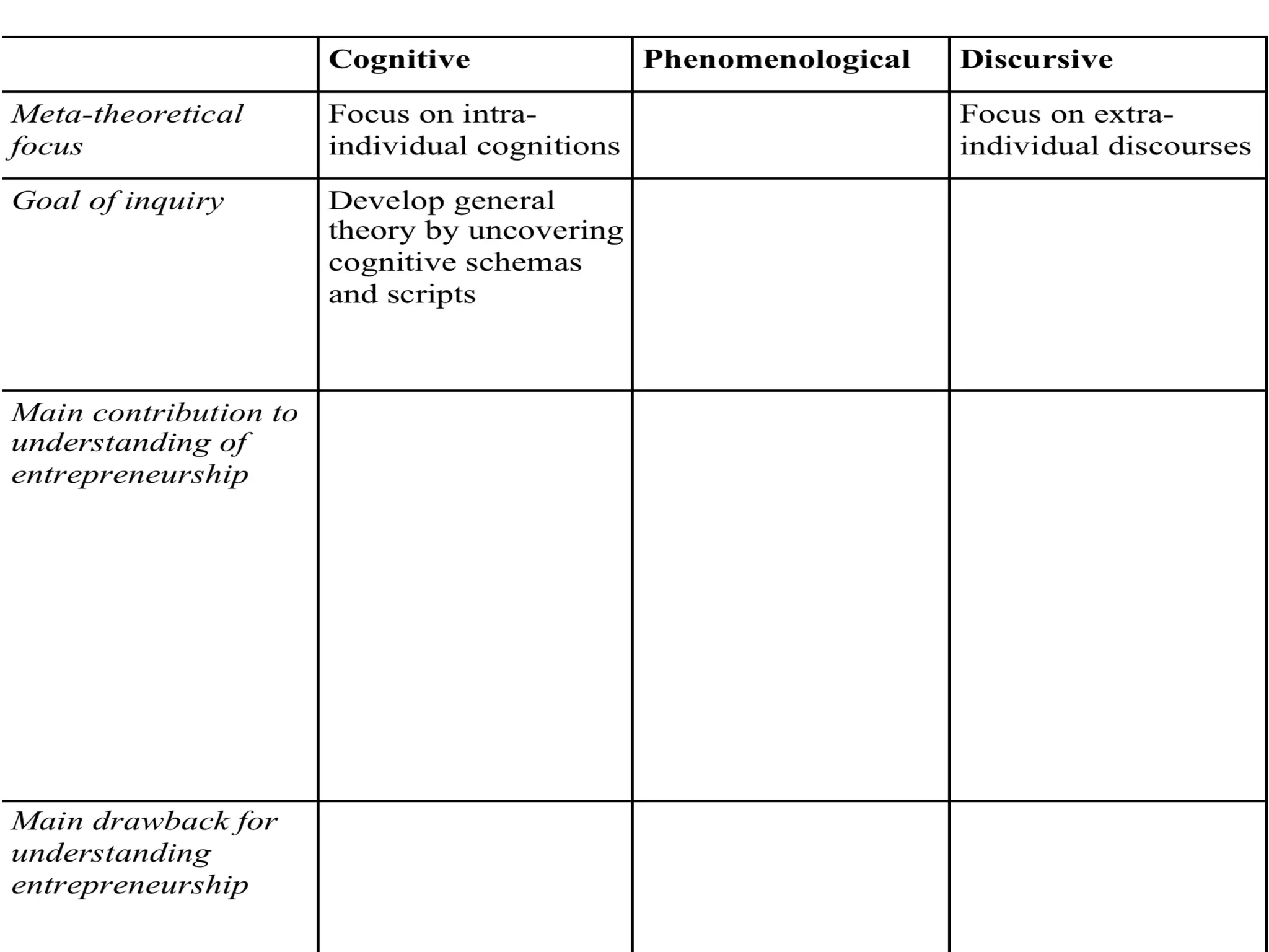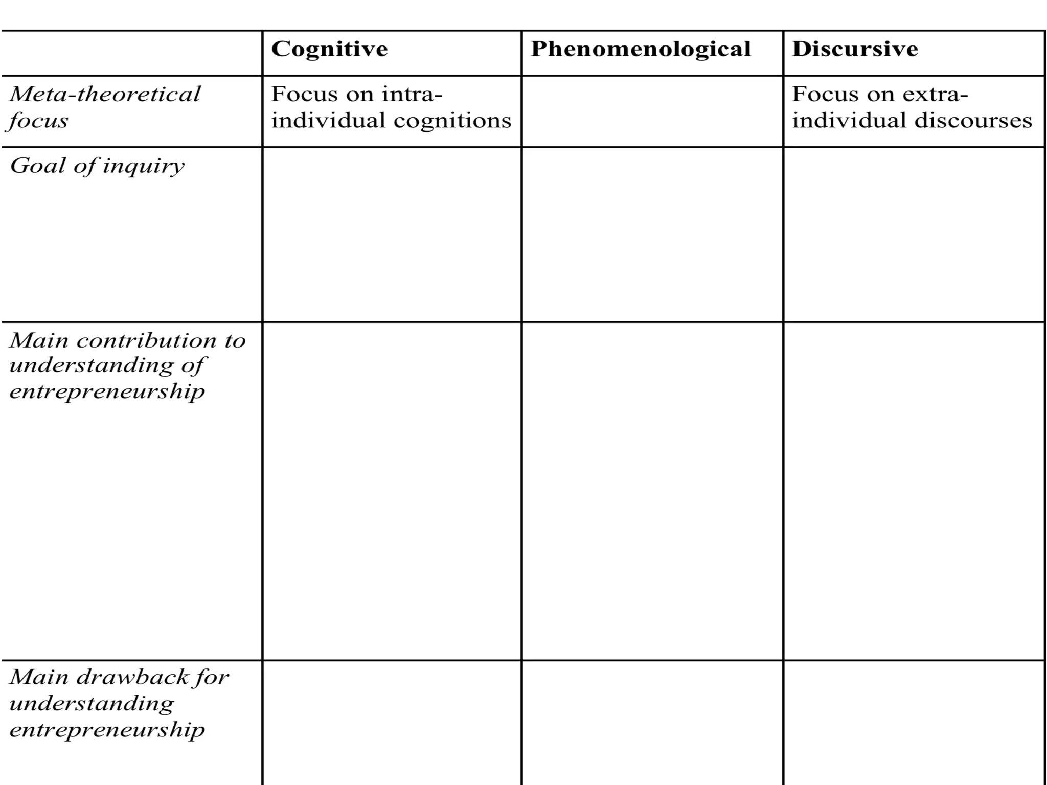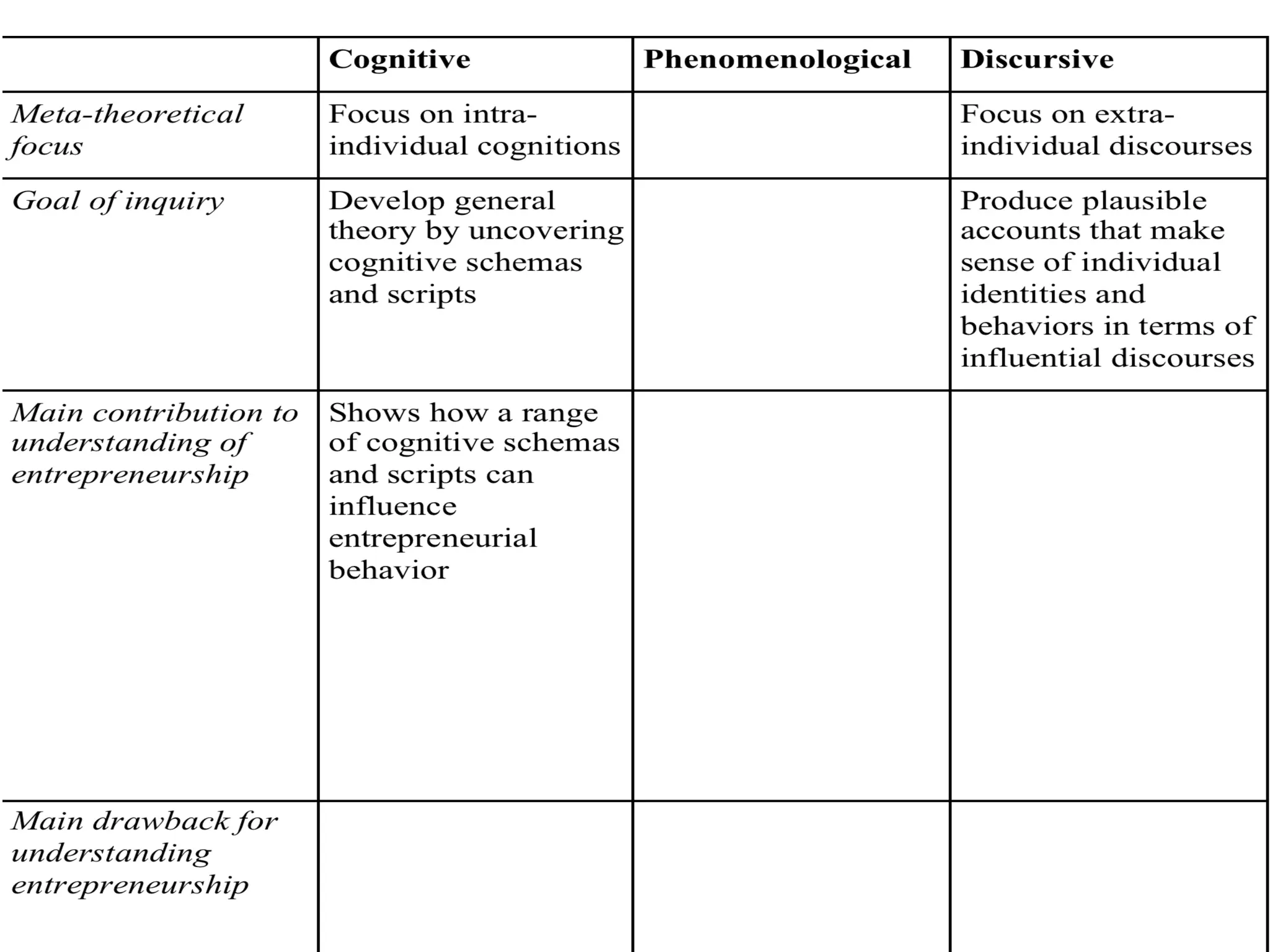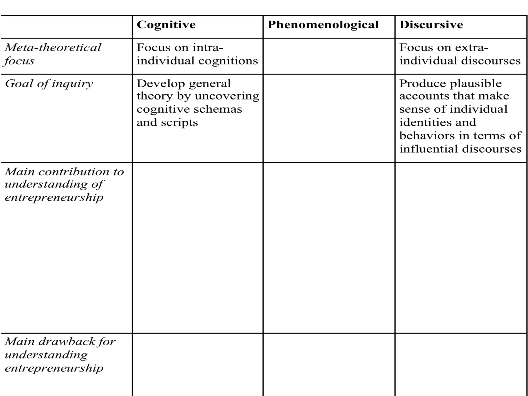 The document discusses phenomenology as a method for studying entrepreneurship. It begins by defining entrepreneurship as creating new products/services under conditions of uncertainty, rather than just small business ownership. It then discusses common approaches to studying entrepreneurs like traits, behaviors, cognitions and discursive factors, and argues phenomenology can provide insights these miss by focusing on entrepreneurs' lived experiences. The document provides an overview of phenomenology's principles and methods, including purposive sampling, semi-structured interviews to understand experiences, and analyzing data for themes. It provides examples of phenomenological entrepreneurship research questions and studies.