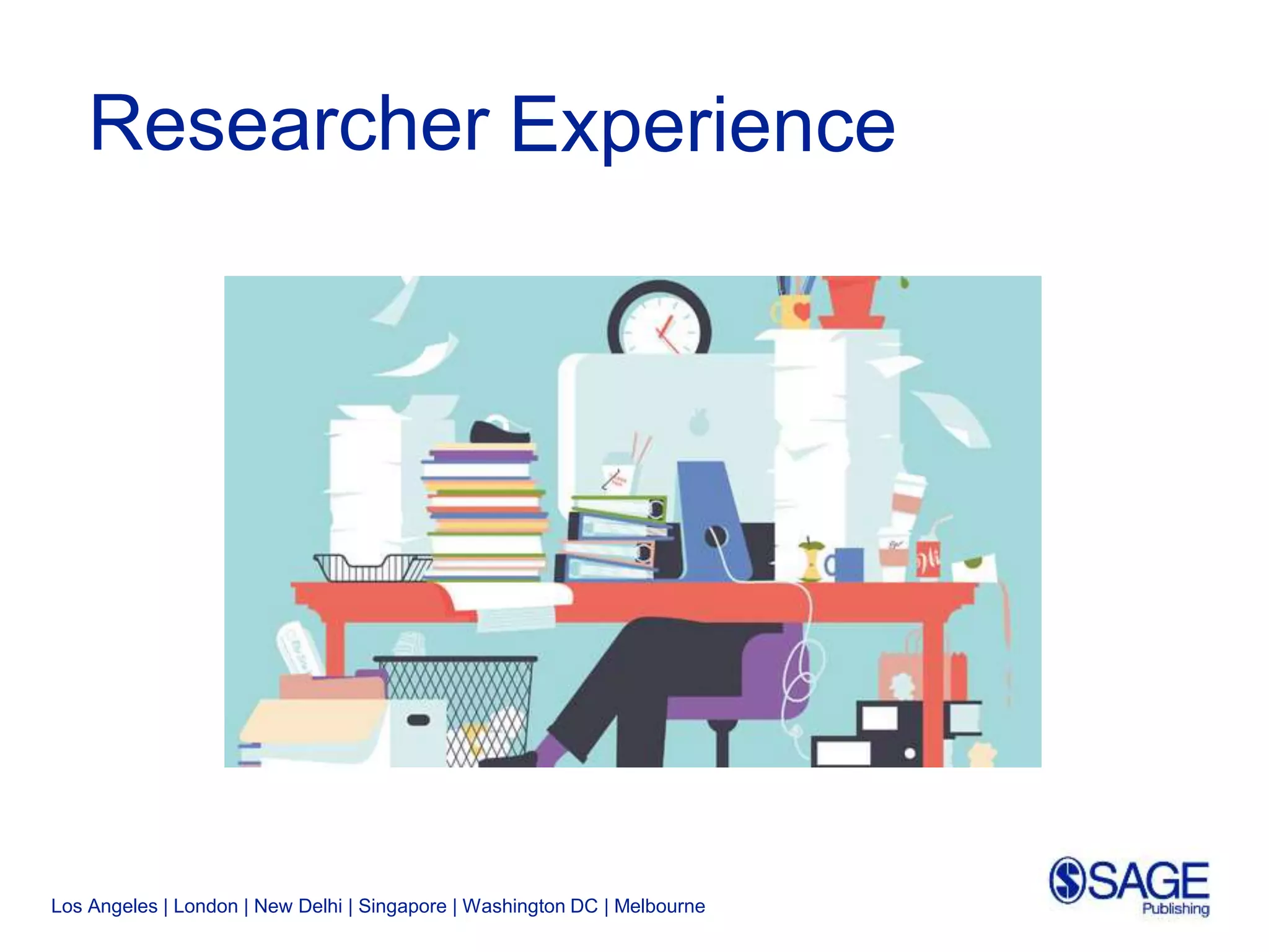 The document discusses research on improving the discovery and access experience for users, emphasizing the importance of both mainstream web searches and specialized databases. It highlights the role of recommendations, serendipity, and various tools used by researchers to manage citations and documents. SAGE's discovery strategy incorporates multiple channels, including libraries, social media, and academic resources.