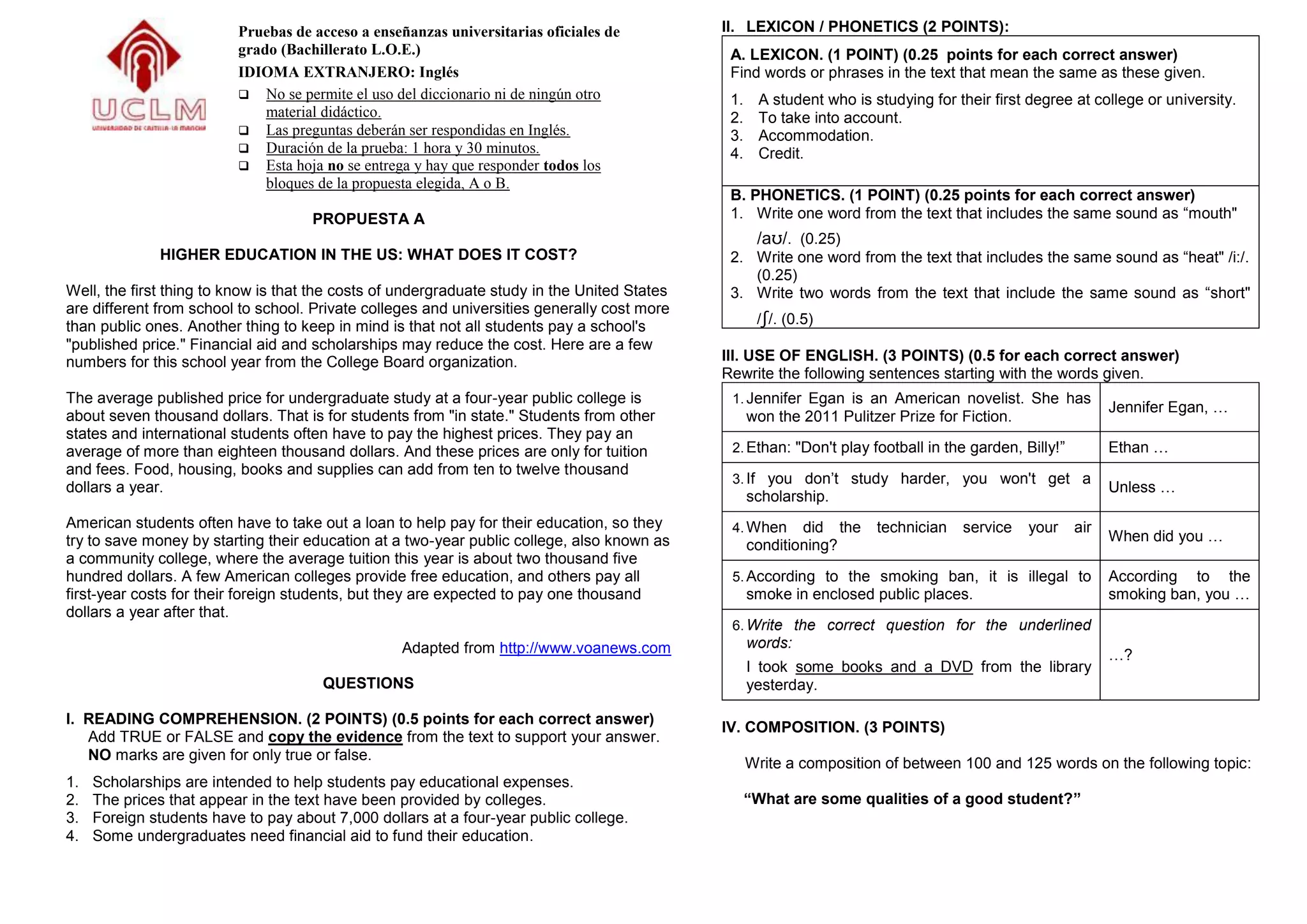 Higher education in the US varies significantly in cost depending on whether a school is public or private. On average, public colleges cost around $7,000 per year for in-state students, while out-of-state and international students pay more than $18,000 on average. Additional living expenses can add $10,000-$12,000 per year. Many students take out loans to help pay for their education. Some students begin at lower-cost community colleges to save money before transferring to a four-year university.