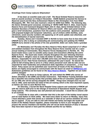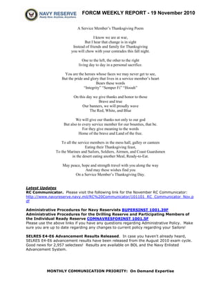 The weekly report provides updates on events and issues for Navy reservists over the past week: