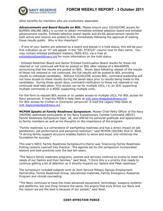 - Advancement and board results now being posted to BUPERS Online to provide commanders immediate access.