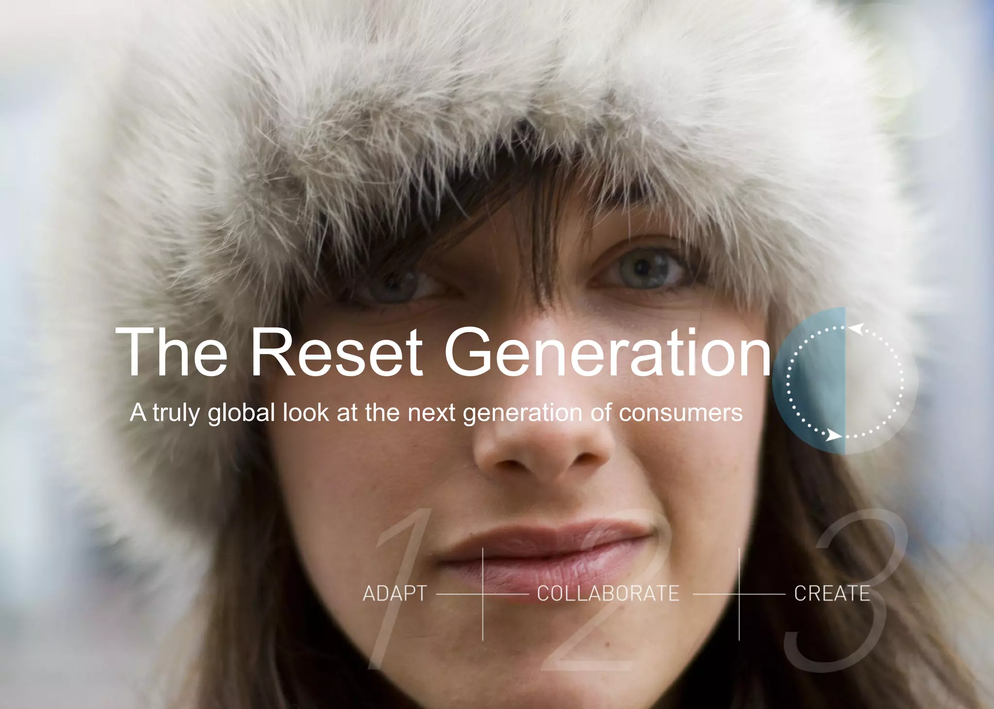 The document presents findings from a global study on the 'Reset Generation,' a demographic of consumers who have adapted to significant economic and technological changes. Key insights include their need for empathy from brands, a strong reliance on online research for decision-making, and a high value placed on creativity in branding. Marketers are advised to engage with this generation through innovative, empathetic strategies that reflect their unique challenges and preferences.