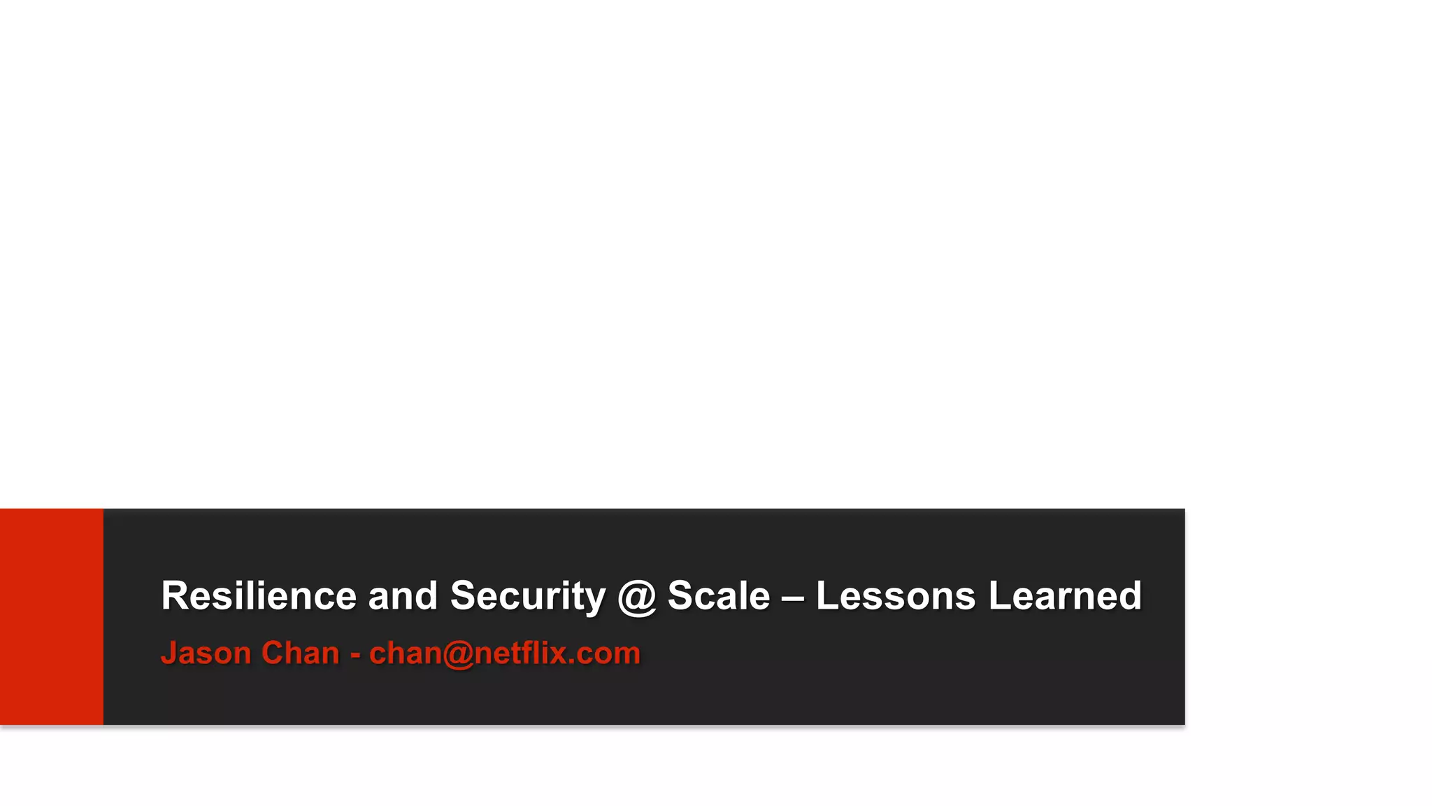 This document discusses Netflix's approach to security and resilience at scale. It notes that Netflix has moved nearly 99% of its operations to the cloud to gain availability and agility. Some key points: