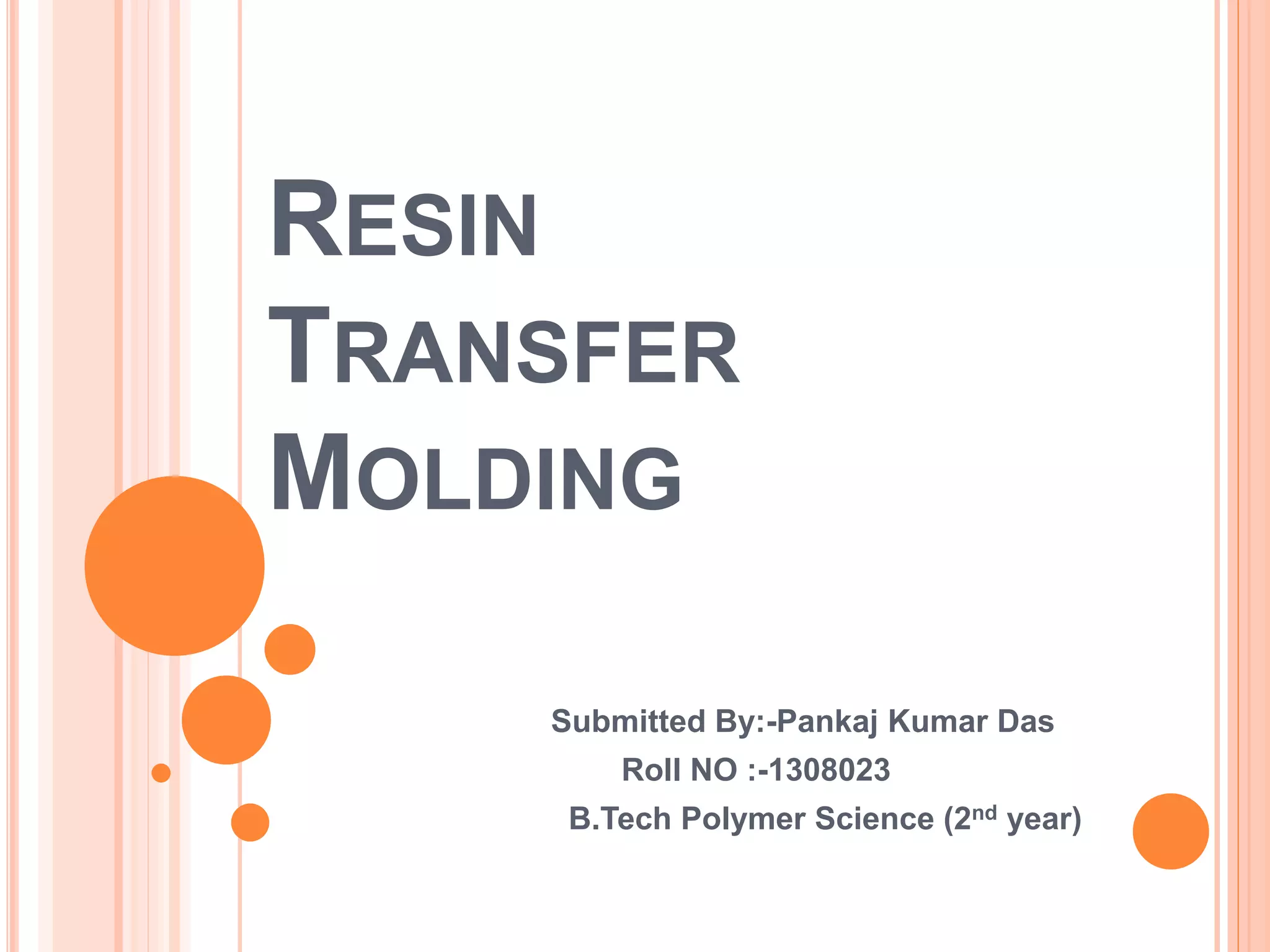 This document discusses resin transfer molding (RTM), which is a manufacturing process for composites. It involves injecting resin into a closed mold containing reinforcing fibers. RTM was originally developed for boat manufacturing in 1946. Common resins used include epoxy, polyester, and vinyl ester. Glass, carbon, and natural fibers are often used as reinforcements. The resin is injected into the mold containing the fibers, where it impregnates the fibers and hardens to form a composite part with good surface quality and complex shapes. Applications include truck panels, boat hulls, wind turbine blades, and various other industrial and consumer products.