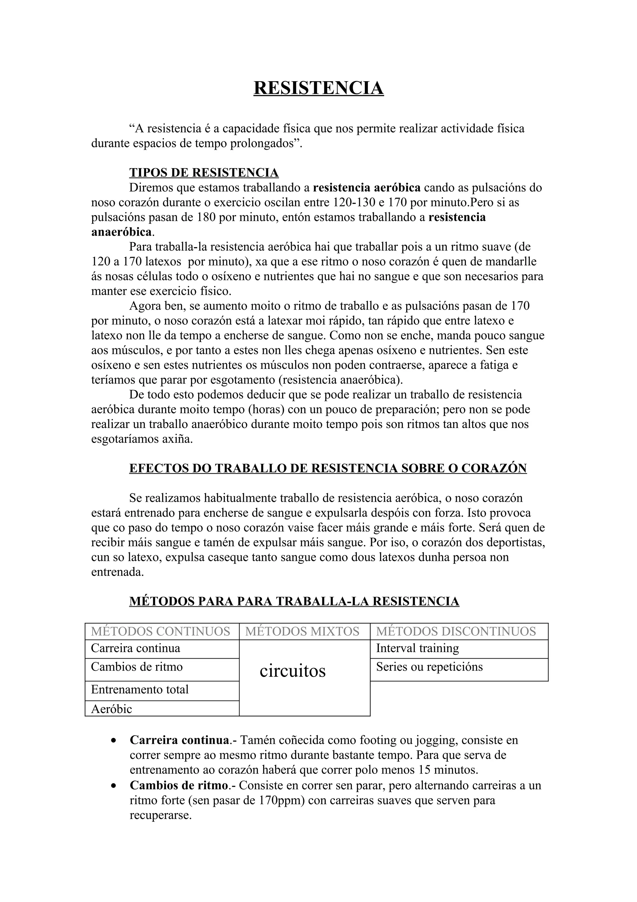 MÉTODOS PARA PARA TRABALLA-LA RESISTENCIA