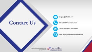 The document outlines a presentation aimed at helping business owners resolve payroll tax problems, detailing five essential steps to compliance and resolution. It highlights common payroll tax mistakes, such as late filing and incorrect worker classification, and emphasizes the importance of understanding one's rights and developing a proactive plan. Additionally, it promotes consulting with Legacy Tax Resolution Services to seek expert advice on managing tax issues.