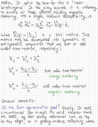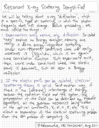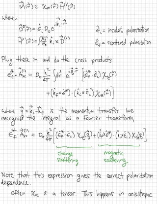 Resonant x-ray diffraction uses x-rays tuned to atomic absorption edges to probe electronic and magnetic structures in materials with high sensitivity. The technique allows one to study ordering of electron orbitals and spins with elemental selectivity. It provides a window into complex ordering phenomena in transition metal oxides and other correlated electron systems.