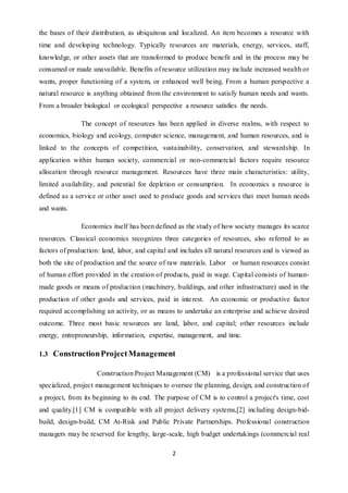 3) Construction project management uses specialized techniques to oversee planning, design, and construction from start to finish to control time, cost and quality.