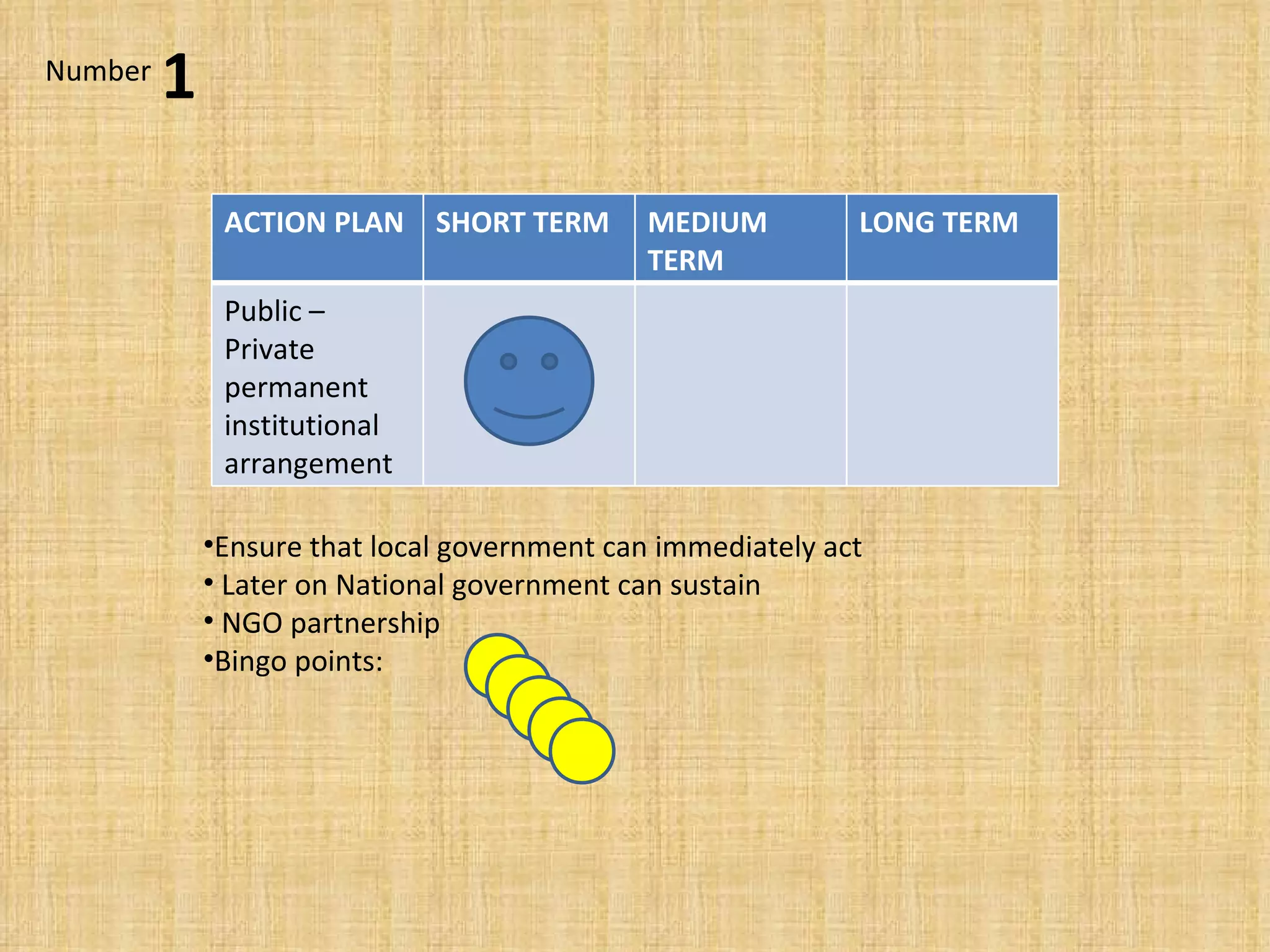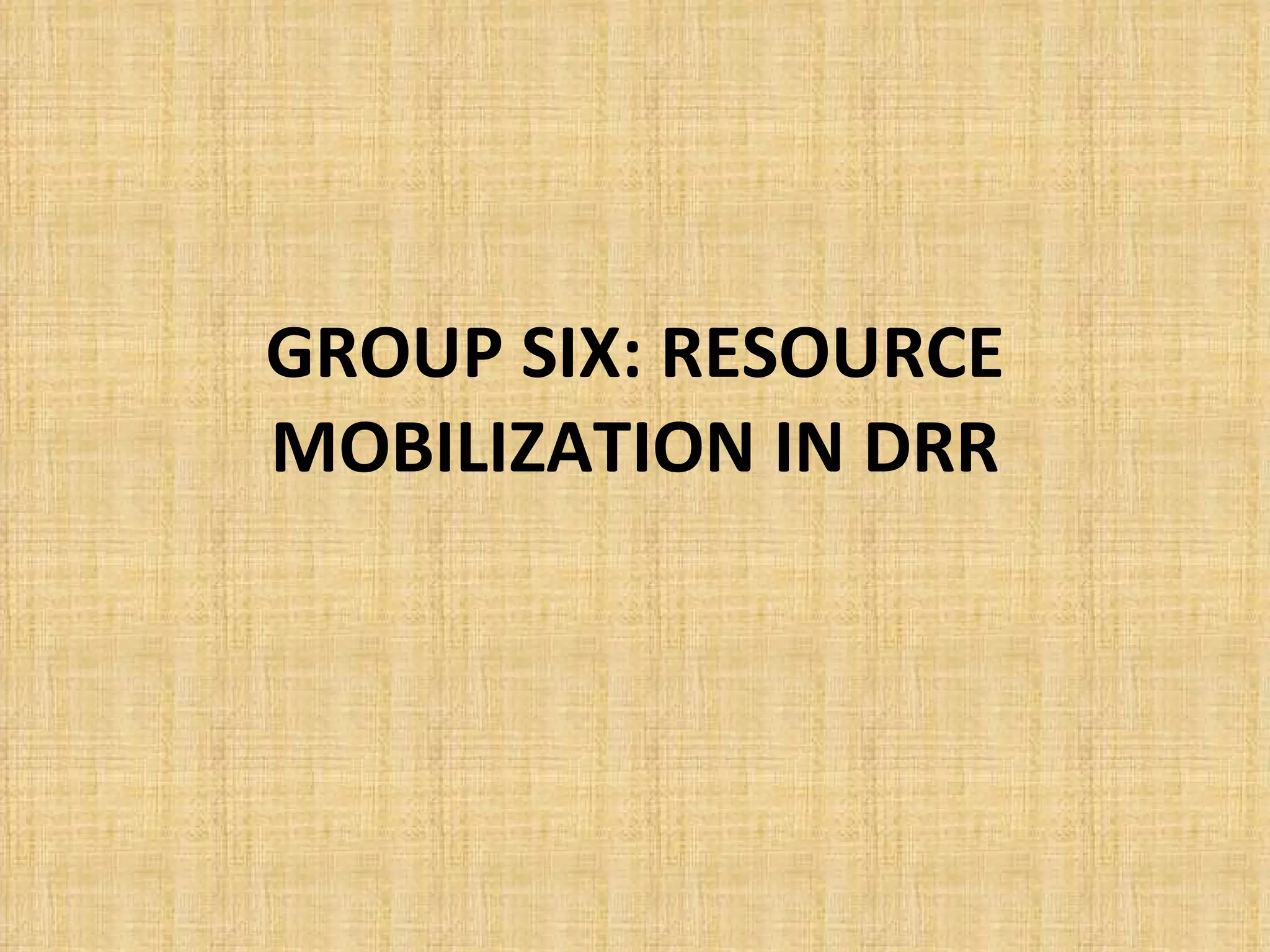 The document outlines an action plan with 15 items to mobilize resources for disaster risk reduction (DRR) in the short, medium, and long term. The top ranked actions are to establish an insurance mechanism, make DRR part of corporate social responsibility, establish DRR point persons and offices, and harmonize national, regional, and local DRR initiatives.