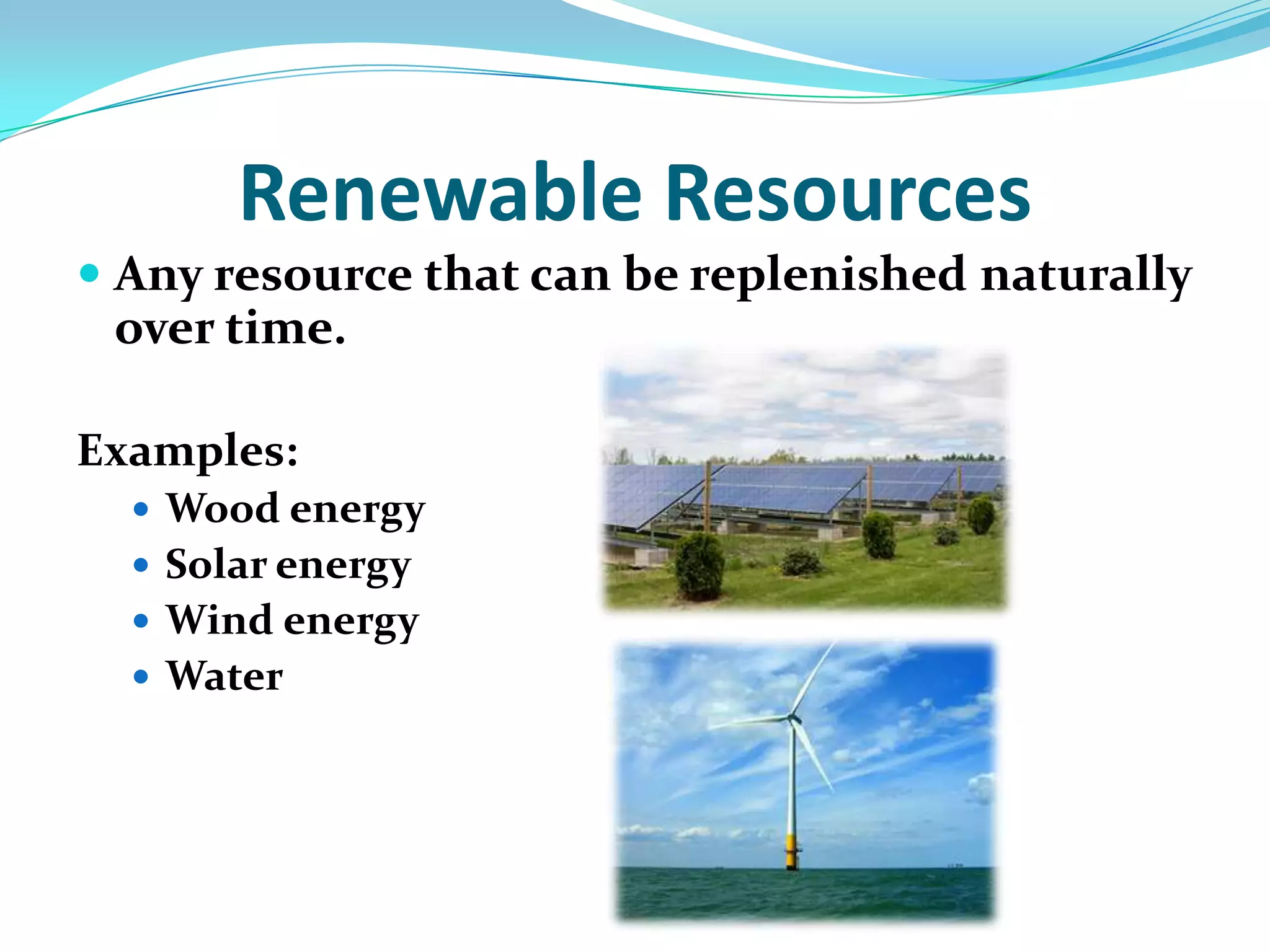This document summarizes renewable and nonrenewable resources and human impacts on the environment. Renewable resources like solar and wind energy can be naturally replenished, while nonrenewables like oil and coal take millions of years to form and will eventually run out. Humans negatively impact the environment through deforestation, pollution, and destruction of coral reefs. These actions can harm health, disrupt ecosystems, and damage the environment. Both renewable and nonrenewable resources are necessary but must be managed sustainably to avoid long-term consequences and leave a healthy world for future generations.