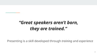 ●Learn and use a script for formal presentations to large