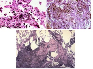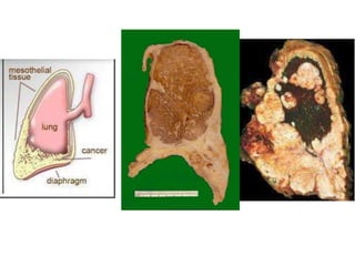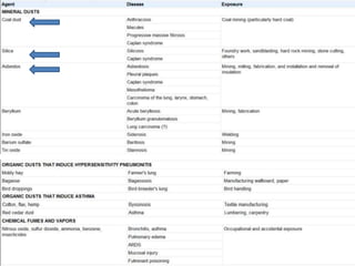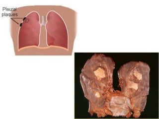 3) Asbestosis is pulmonary fibrosis caused by inhaling asbestos fibers which can lead to complications like mesothelioma and lung cancer decades later. Asbestos was commonly used in insulation and construction.