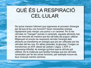 Mitjançant el procés de respiració cel·lular l'energia dels