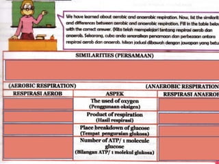 1) Respiration is the process by which organisms obtain oxygen and release carbon dioxide, allowing cells to produce energy through the breakdown of glucose in the form of ATP. Aerobic respiration uses oxygen to fully oxidize glucose to produce more ATP.