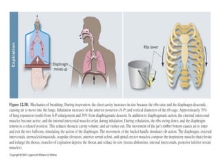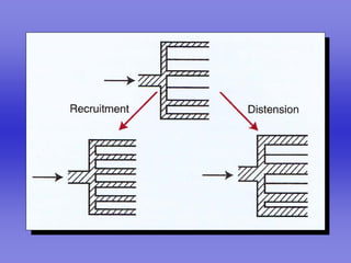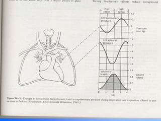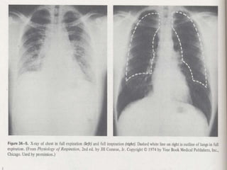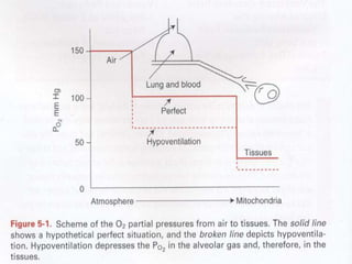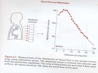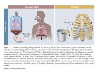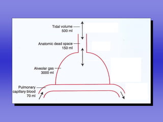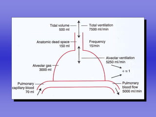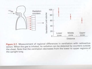 Pulmonary ventilation functions to maintain favorable concentrations of oxygen and carbon dioxide in the alveoli during rest and exercise. Inspiration occurs when intrapulmonary pressure is reduced below atmospheric pressure through contraction of inspiratory muscles, while expiration is usually a passive process at rest but involves expiratory muscles during exercise. Pulmonary ventilation, measured as minute ventilation, ensures complete gas exchange before blood leaves the lungs for transport throughout the body.