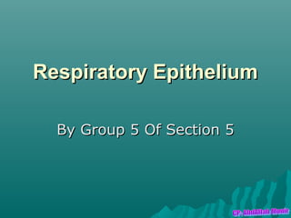 The respiratory epithelium lines the respiratory tract from the nose to the trachea. It is classified as ciliated pseudostratified columnar epithelium in the upper airways, composed mainly of ciliated cells, goblet cells, and basal cells. The cilia beat in a coordinated way to move mucus up the airways via the mucociliary escalator, trapping pathogens and particles to be expelled or swallowed, protecting the lungs.
