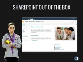 This document discusses applying responsive design techniques to SharePoint sites. It covers challenges with the out-of-the-box SharePoint experience on mobile, and strategies for taking a responsive approach, including building a fluid grid layout, using media queries, and prioritizing mobile-first content. The goal is to translate designs across viewports for a better user experience on any device.