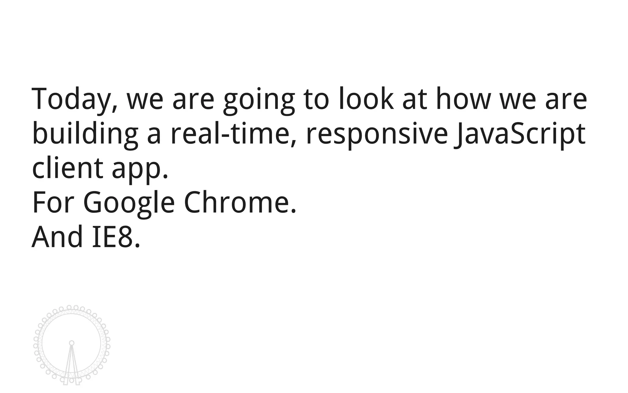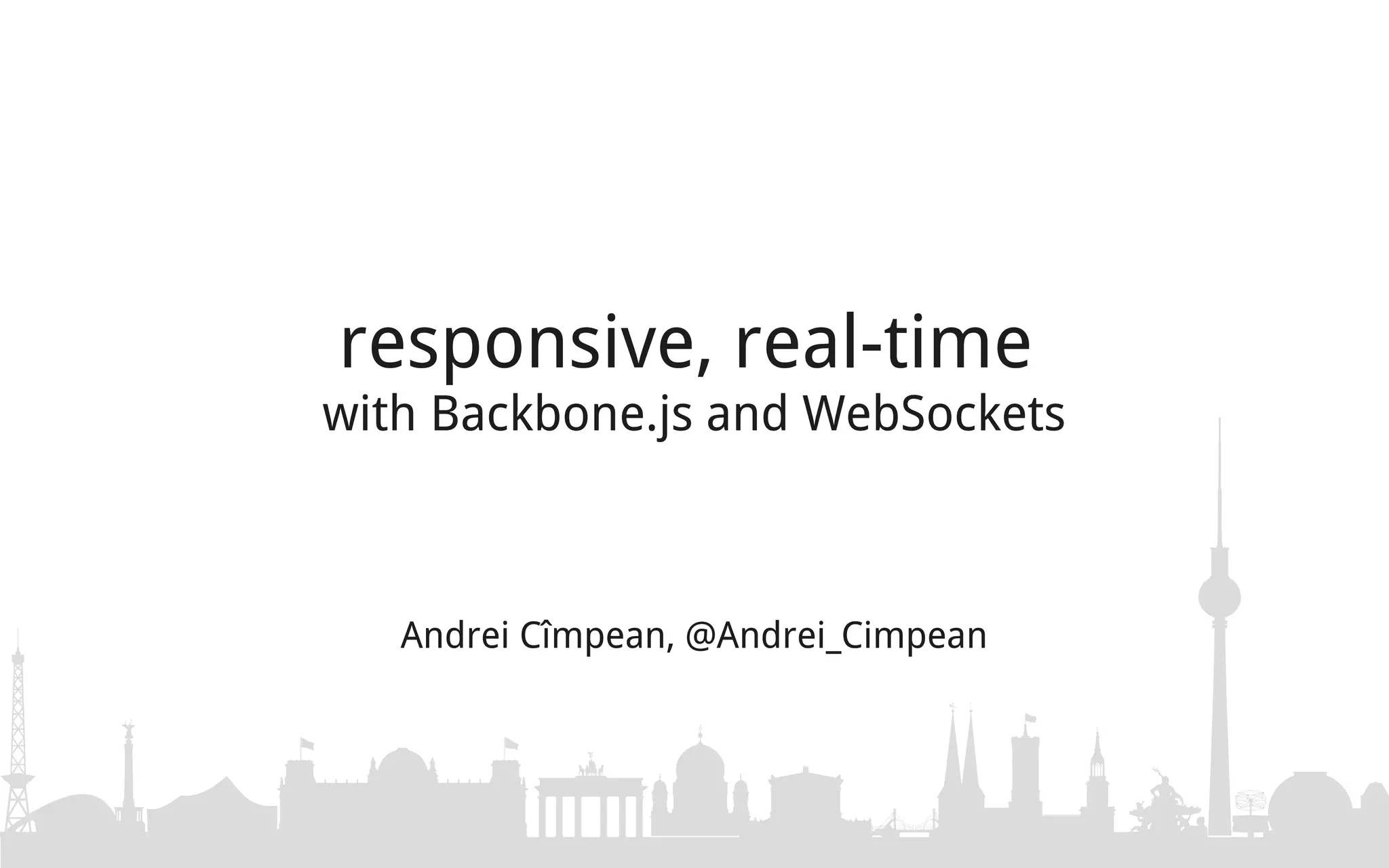 This document discusses the development of a real-time, responsive JavaScript client application for Chrome and IE8 using Backbone.js and WebSockets. It outlines the need for instant UI updates and communication without overloading the server, detailing the architecture, technology choices, and implementation strategies. Key concepts include the use of Backbone.js for structuring models and views, CometD for real-time communication, and an optimistic UI approach to enhance user experience.