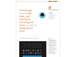 - Key techniques include using flexible units like percentages and ems, responsive images, and media queries to trigger layout changes at breakpoint widths. Frameworks can help implement responsive grids.