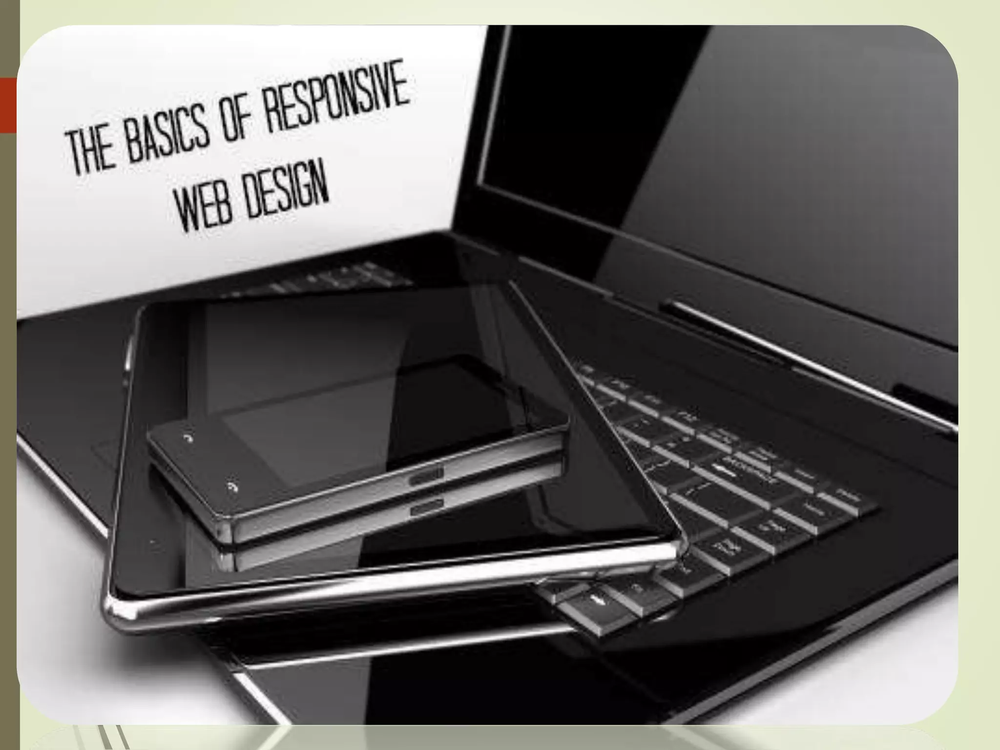 This document provides an overview of responsive web design. It defines responsive design as designing websites to be compatible across different devices through flexible layouts. The document outlines some of the key elements of responsive design like meta tags, CSS media queries, grid systems and frameworks. It also lists advantages of responsive design for both users and designers, such as optimized viewing experience, reduced development and maintenance costs.