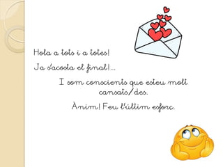 Tots i totes comenceu a estar molt cansats i cansades…