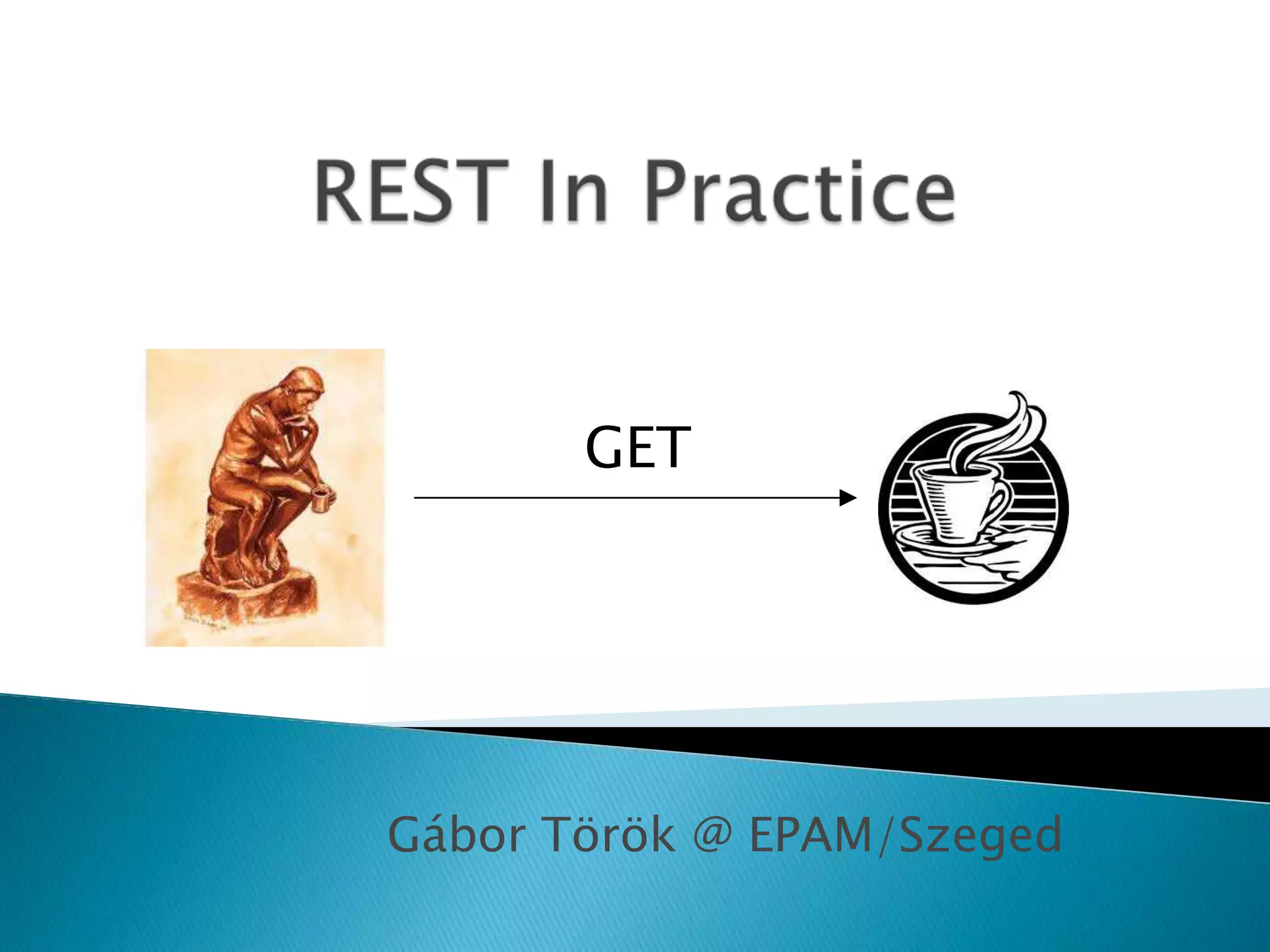 This document provides an overview of REST and best practices for REST API design. It discusses the core principles of REST, Richardson Maturity Model for REST API design, and examples demonstrating the different levels. It also covers Java support for REST APIs using JAX-RS and Spring frameworks. The document recommends practices like using plural nouns for resources and HTTP status codes for errors. It provides contact information for the author, Gábor Török, an experienced Solutions Architect.