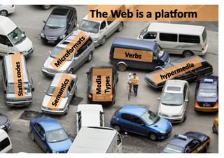 This document provides an overview of a tutorial on REST and web services. The tutorial will cover web basics, URI templates, HTTP, CRUD, semantics, hypermedia formats, and Atom/AtomPub. It is intended to explain how to design distributed systems using the web as a platform and leverage REST architectural principles. The tutorial will use Richardson's maturity model to discuss different service styles on a spectrum from non-RESTful to fully RESTful.