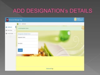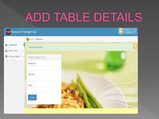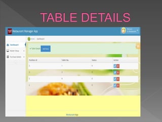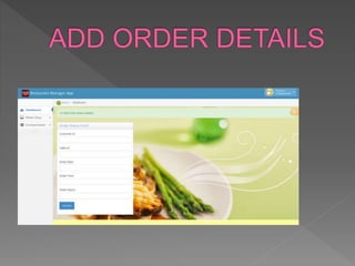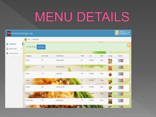The document outlines the development of an Android-based restaurant management app aimed at improving food ordering processes for customers and employees. It details the hardware and software requirements, project objectives, and the benefits of transitioning from manual to computerized systems. The app provides functionalities for order management, billing, and enhanced customer experiences, though it notes limitations such as user interface issues and security concerns.