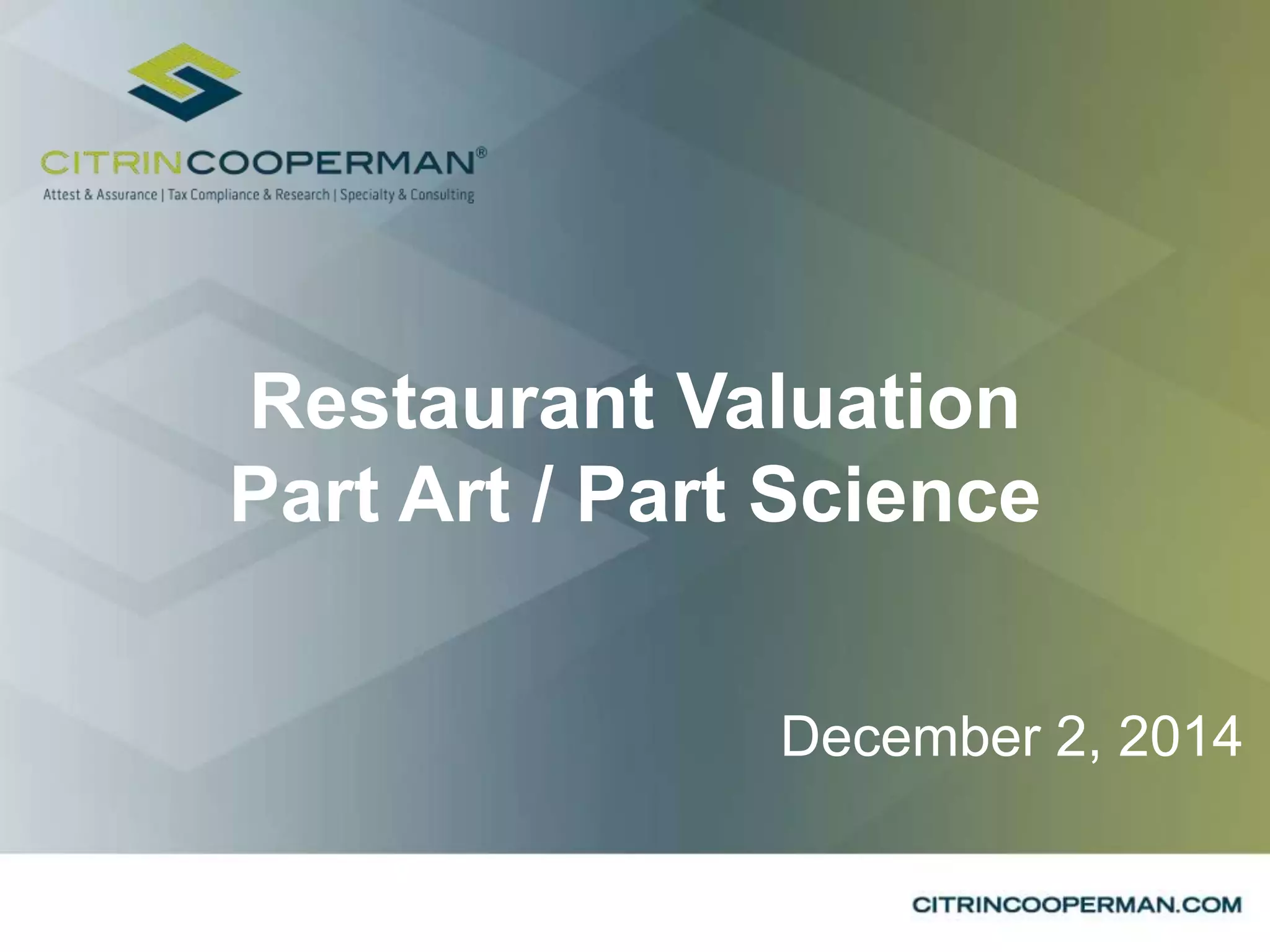 The document discusses the complexities of restaurant valuation, emphasizing the various standards of value necessary for different purposes such as mergers, estate taxes, and financial reporting. It outlines common valuation approaches including income, cost, and market approaches, along with examples and typical rules of thumb for assessing worth. Additionally, the document highlights key value drivers in the restaurant industry, common errors in valuation, and best practices for effective valuation reporting.