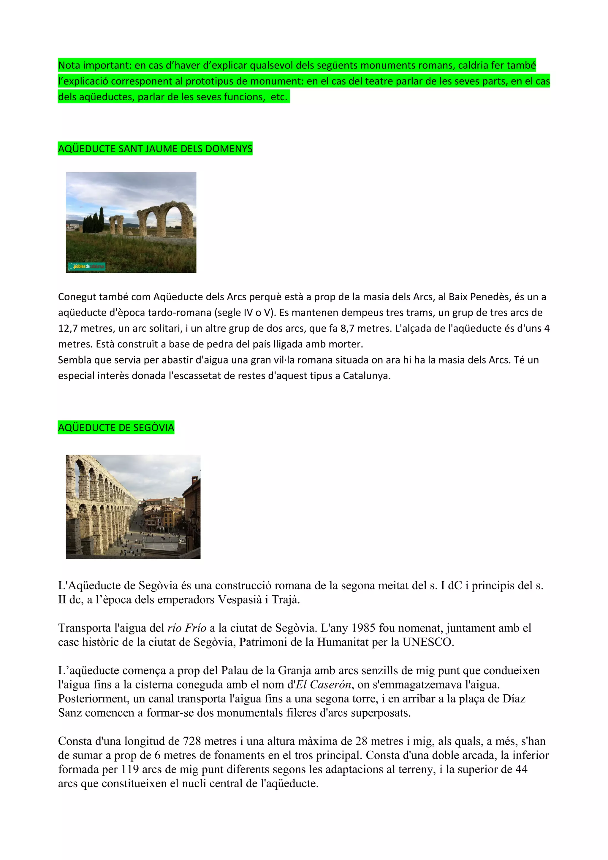 dels aqüeductes, parlar de les seves funcions, etc.