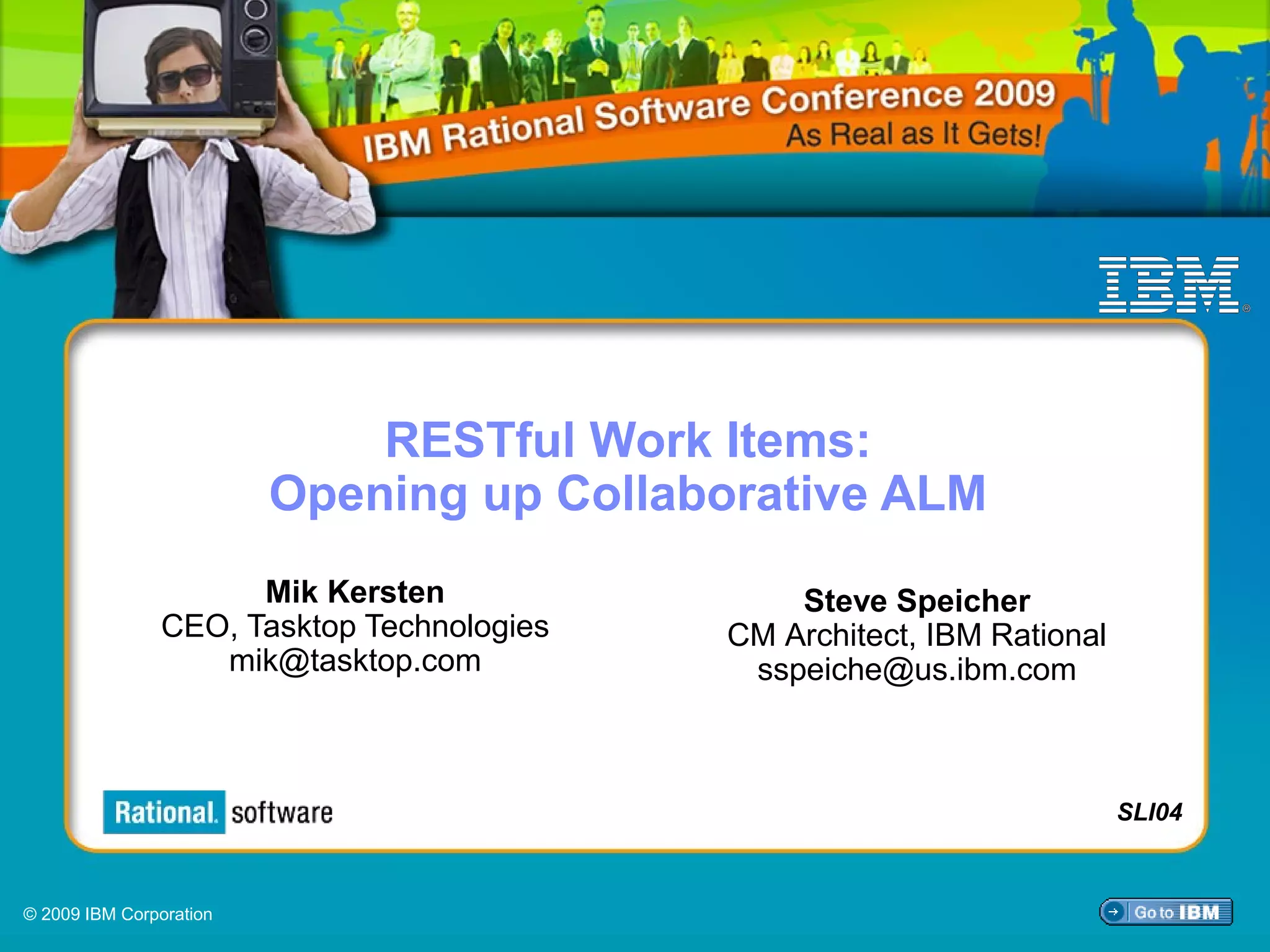 This document summarizes a presentation about RESTful work items and opening up collaborative application lifecycle management (ALM). It discusses the problem of integrating many different ALM tools, proposes using open standards like OSLC to define REST APIs, and demos integrating Tasktop and ClearQuest using OSLC. The presentation outlines the current state of the OSLC Change Management specification, previews upcoming version 2.0, and concludes by discussing next steps for OSLC adoption.