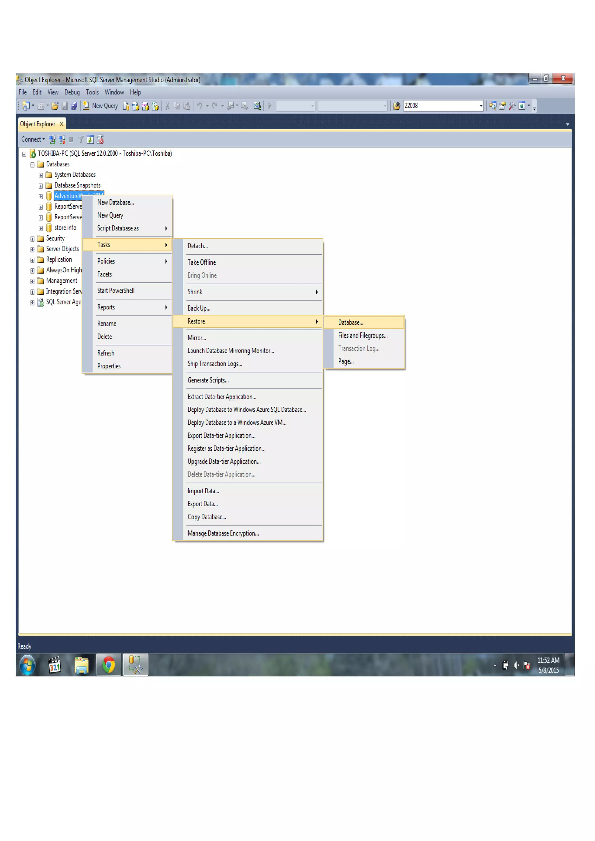 The document discusses restoring a full database backup without recovery followed by applying transaction log backups to recover the database. After restoring the full backup and transaction logs, the database is left in a recovering state and can then be recovered to an up-to-date operational state.