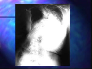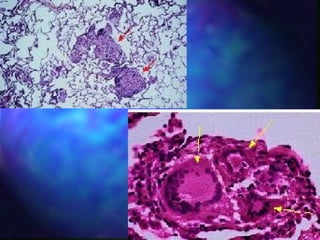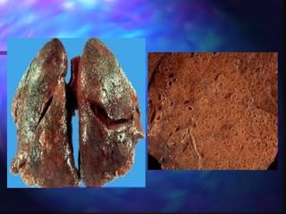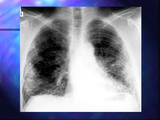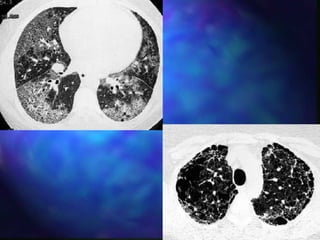 This document discusses restrictive lung disease, which is defined by reduced lung volumes. It can be caused by intrinsic lung diseases that affect the lung parenchyma through inflammation or scarring, or extrinsic disorders of the chest wall, pleura, or respiratory muscles. Common intrinsic lung diseases include idiopathic pulmonary fibrosis (IPF), sarcoidosis, hypersensitivity pneumonitis, and interstitial lung disease caused by drugs. Extrinsic disorders involve diseases of the pleura, chest wall, or neuromuscular system. Restrictive lung disease results in hypoxemia, reduced diffusion capacity, and impaired gas exchange. Evaluation involves pulmonary function tests and imaging, and treatment depends on the underlying cause.