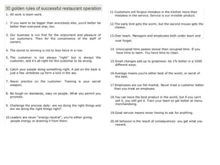 This website provides information about restaurants and the restaurant industry. It covers topics such as restaurant types, cuisine types, food and drink, restaurant management and careers. Visitors can find news and articles on opening a restaurant, restaurant reviews, recipes and more.